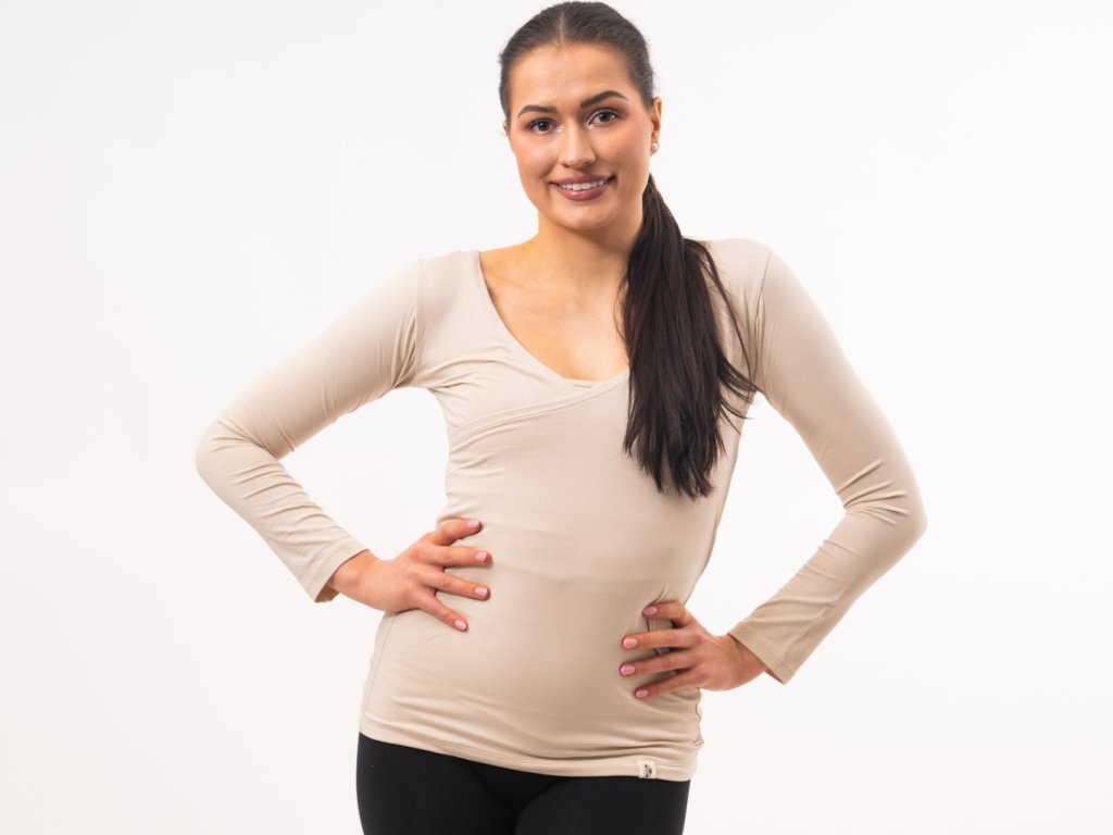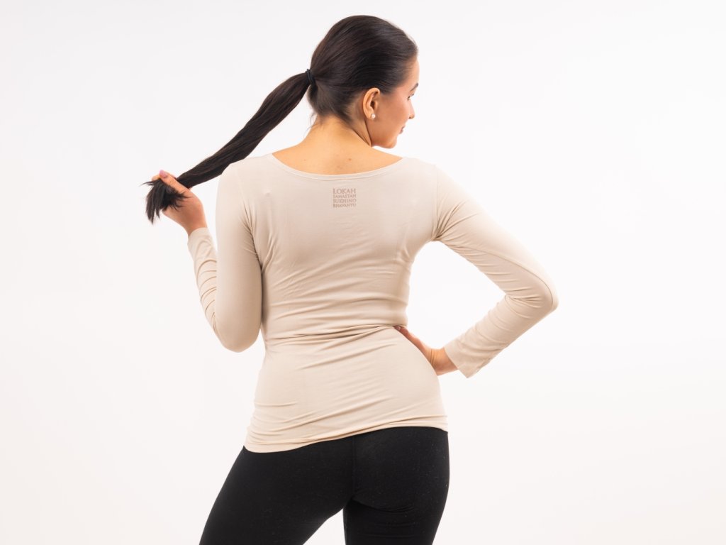 Dámské tričko s dlouhým rukávem PARVATI, rostlinná viskóza – LATTE