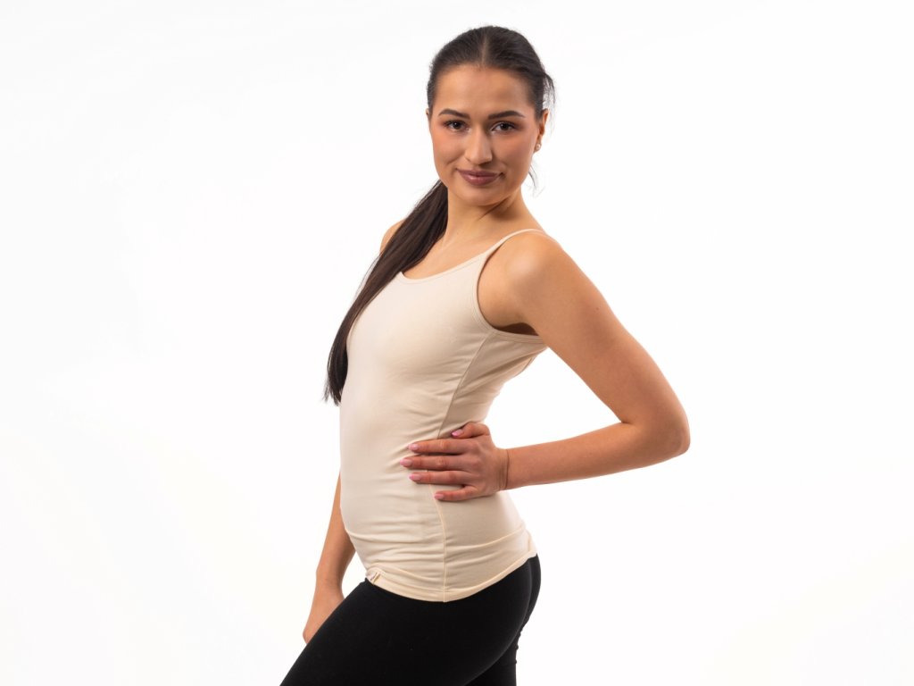 Tílko s podprsenkou SARASWATI, bambus, CRÈME BRÛLÉE – organicky obarveno